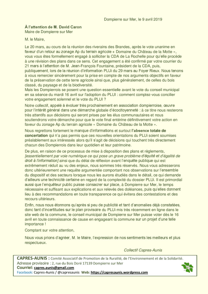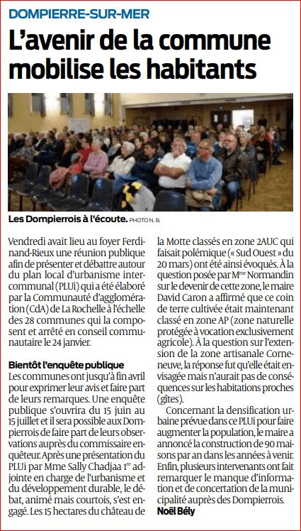 Le Conseil municipal de Dompierre sur Mer a voté en faveur du PLUi lors de sa séance du 16 avril 2019.