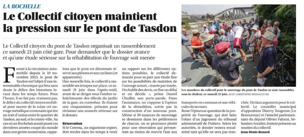 Le Collectif Pont de Tasdon dénonce l’immobilisme des pouvoirs publics sur ce dossier